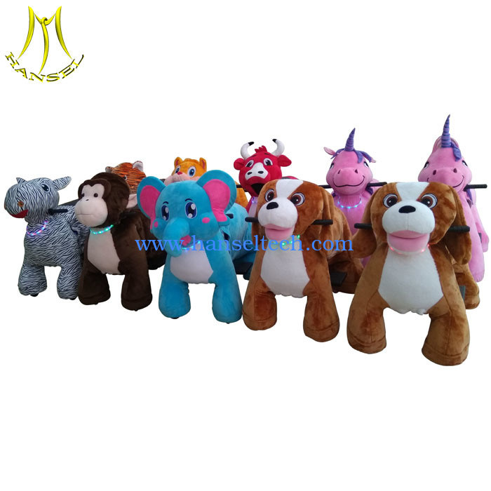 Hansel plush motorized animals are battery operated with coin or non coin type animals,it can walking in outdoor and indoor playground,with its attractive appearance to consumers and fast profits to the developer,more and more investors are join this business.it is available for shopping mall,amusement park,game center,parties,indoor or outdoor playground,ect.