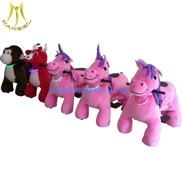 Hansel plush motorized animals are battery operated with coin or non coin type animals,it can walking in outdoor and indoor playground,with its attractive appearance to consumers and fast profits to the developer,more and more investors are join this business.it is available for shopping mall,amusement park,game center,parties,indoor or outdoor playground,ect.