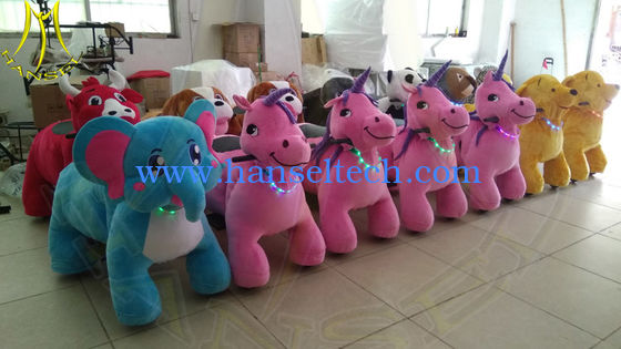 Hansel plush motorized animals are battery operated with coin or non coin type animals,it can walking in outdoor and indoor playground,with its attractive appearance to consumers and fast profits to the developer,more and more investors are join this business.it is available for shopping mall,amusement park,game center,parties,indoor or outdoor playground,ect.people from all ages can ride on it for fun,it is a simple investment which are with great profits.More and more people has find the market for it.Will you join this business? (^_^)
