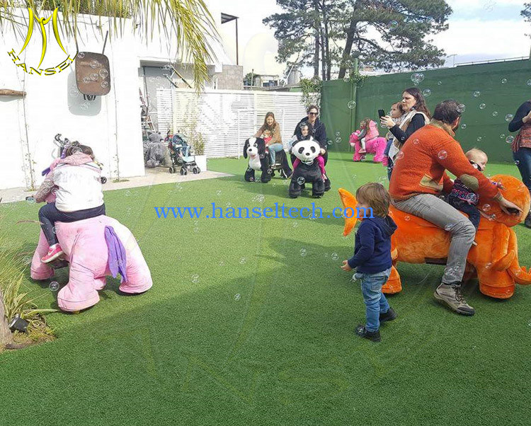 Hansel company manufacturer those electronic riding animals, known as Motorized animals since 2008. These portable amusement rides, which are battery operated, are sure to be a hit with your little children. With an array of musical genres to choose from while riding, as well as forty different animals to choose from–Hansel Motorized Animals a perfect opportunity to foster your child’s sense of individuality in a safe and structured environment. Still a little skittish of turning the reins over to the little ones? No worries, each animal is able to withstand a weight of up to 200 pounds, so you can take a ride with them if you’d like.Hansel plush motorized animals are battery powered with token or non token can move in any flat ground,people from all ages can ride on it for fun,Hope you will join us soon. (^_^)