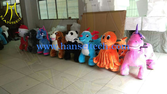 1.Hansel has manufacture these animals for many years,our animals are with different colors and designs and facial expression which is very charming to kids and adults.plush motorized animals are battery powered with token or non token can move in any flat ground,people from all ages can ride on it for fun,it is a simple investment which are with great profits.More and more people has find the market for it.Will you join this business?