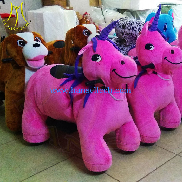 Hansel plush motorized animals are battery powered with token or non token can move in any flat ground,people from all ages can ride on it for fun,it is a simple investment which are with great profits.More and more people has find the market for it.