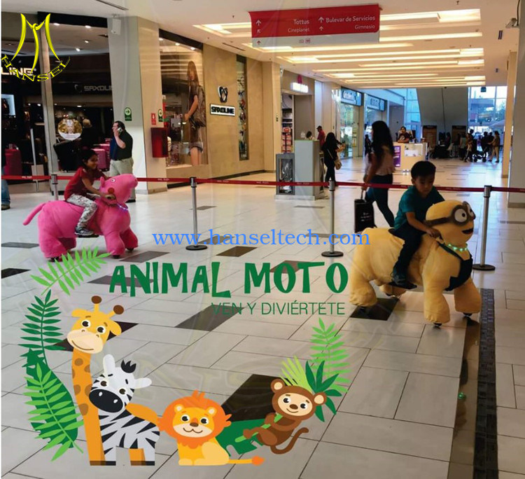 Hansel company is located in the world’ largest amusement locality in Guangzhou .We have 10years’s experience in amusement industry. Most of our clients are willing to start the business with us .The material we use fireproof plush animal cover with 4”wheel and 6”wheel and lead-acid battery which is very strong to bear a weight of 150kg. . Animal appearance is quite adorable and attractive for kids. There are over 50 vivid animal designs . It is a profitable business with low investment . Our animals can ride both indoor and outdoor .