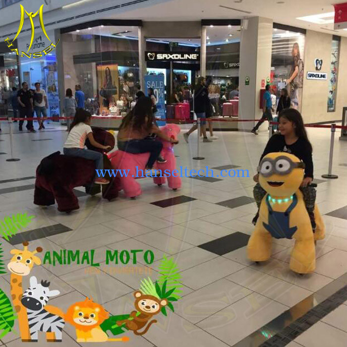 Hansel plush Motorized animals are coin operated or time setting amusement rides that work with rechargeable batteries, can go forward and turn left and right with music. They are the current trend for child amusement. the battery is rechargeable and coin operated motorized animal is making them easy to control for parties and businesses. With every purchase of a coin operated electronic animal scooter, fifty tokens will be included at no extra cost!
