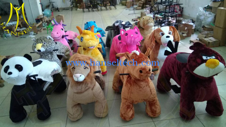 Hansel plush Motorized animals are coin operated or time setting amusement rides that work with rechargeable batteries, can go forward and turn left and right with music. They are the current trend for child amusement. the battery is rechargeable and coin operated motorized animal is making them easy to control for parties and businesses. With every purchase of a coin operated electronic animal scooter, fifty tokens will be included at no extra cost!