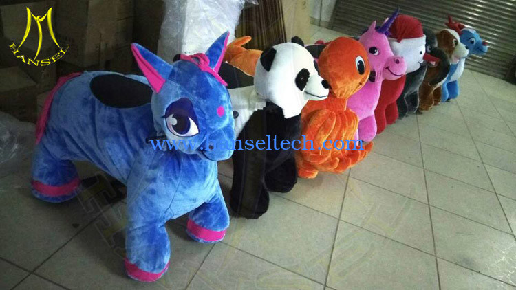 Hansel plush Motorized animals are coin operated or time setting amusement rides that work with rechargeable batteries, can go forward and turn left and right with music. They are the current trend for child amusement. the battery is rechargeable and coin operated motorized animal is making them easy to control for parties and businesses. With every purchase of a coin operated electronic animal scooter, fifty tokens will be included at no extra cost!