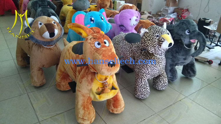 Hansel plush Motorized animals are coin operated or time setting amusement rides that work with rechargeable batteries, can go forward and turn left and right with music. They are the current trend for child amusement. the battery is rechargeable and coin operated motorized animal is making them easy to control for parties and businesses. With every purchase of a coin operated electronic animal scooter, fifty tokens will be included at no extra cost!
